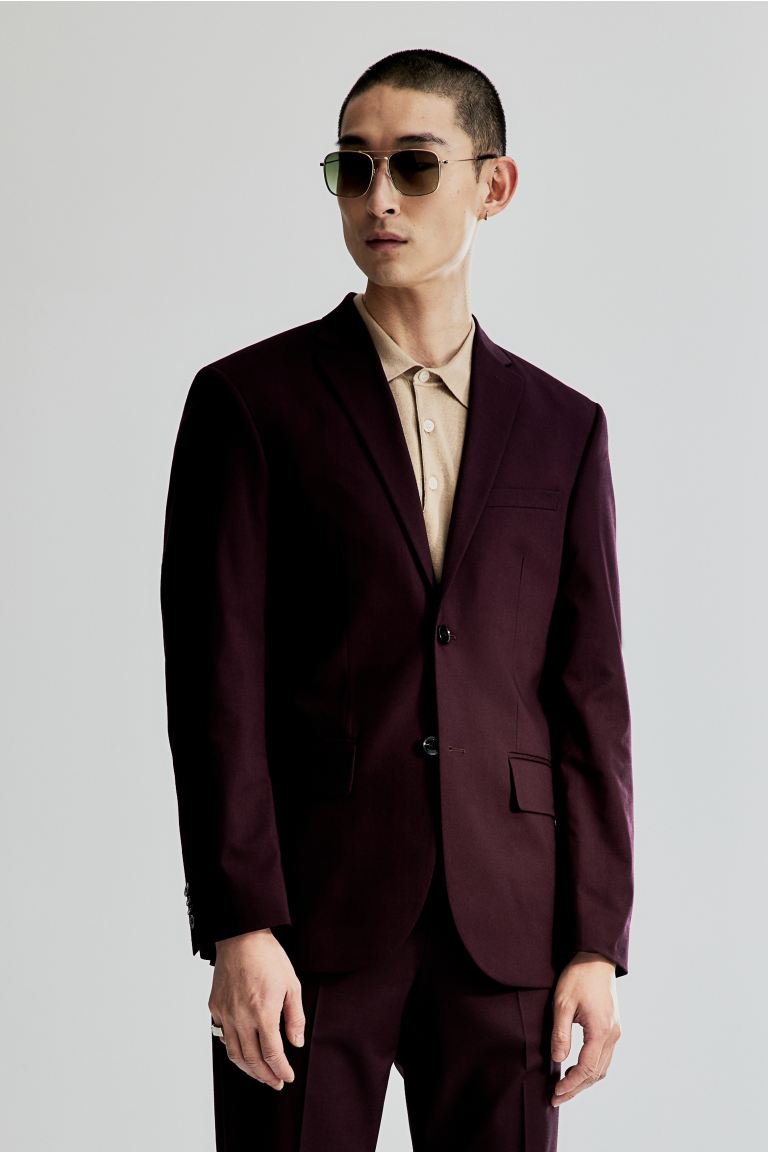 Single-breasted jacket in a stretch weave with narrow notch lapels with a decorative buttonhole, a chest pocket, flap front pockets and one inner pocket. Slim fit with two buttons at the front, decorative buttons at the cuffs and a single back vent. Lined.