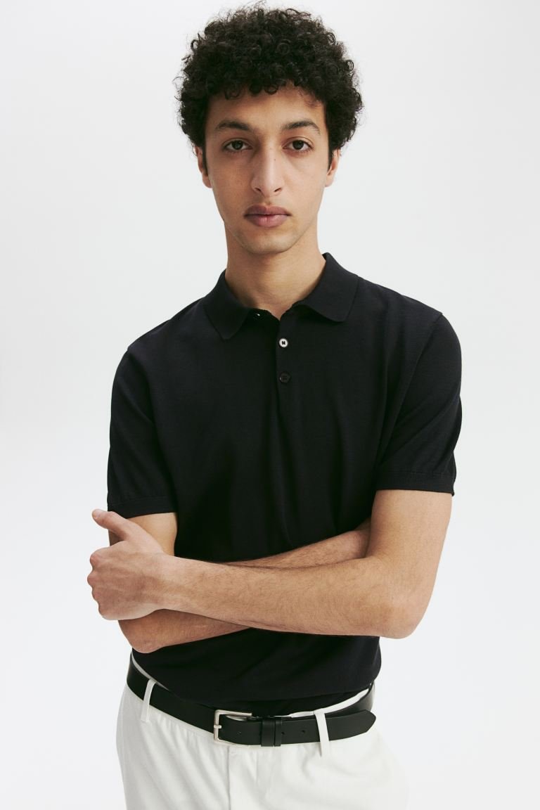 Polo shirt in a fine-knit cotton and mulberry silk blend with a ribbed collar, button placket and short sleeves. Slim fit that hugs the contours of your body, creating a fitted silhouette.